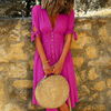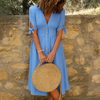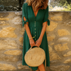 Abito midi traspirante con scollo a V e bottoni